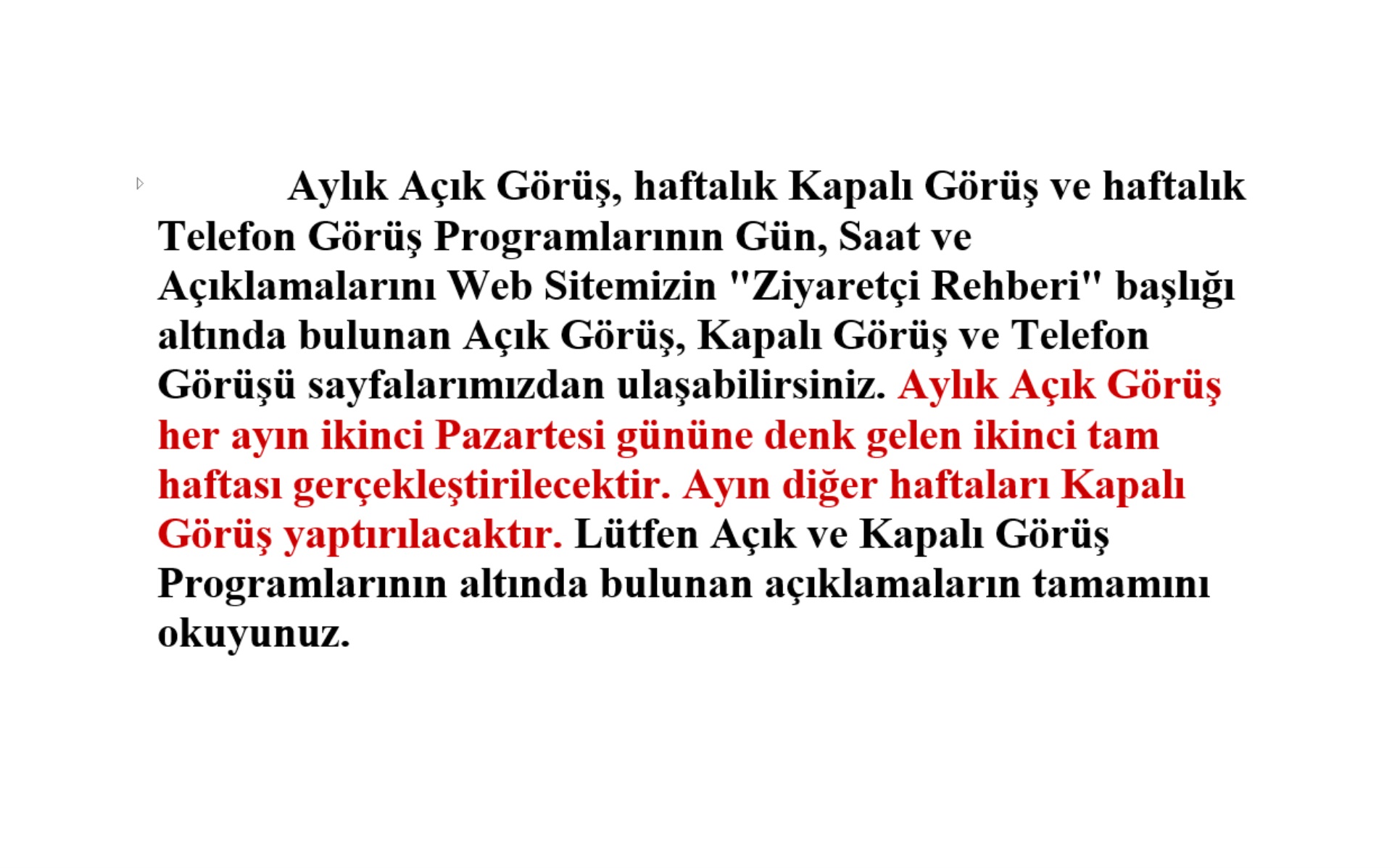 YENİ AÇIK GÖRÜŞ TARİHLERİ